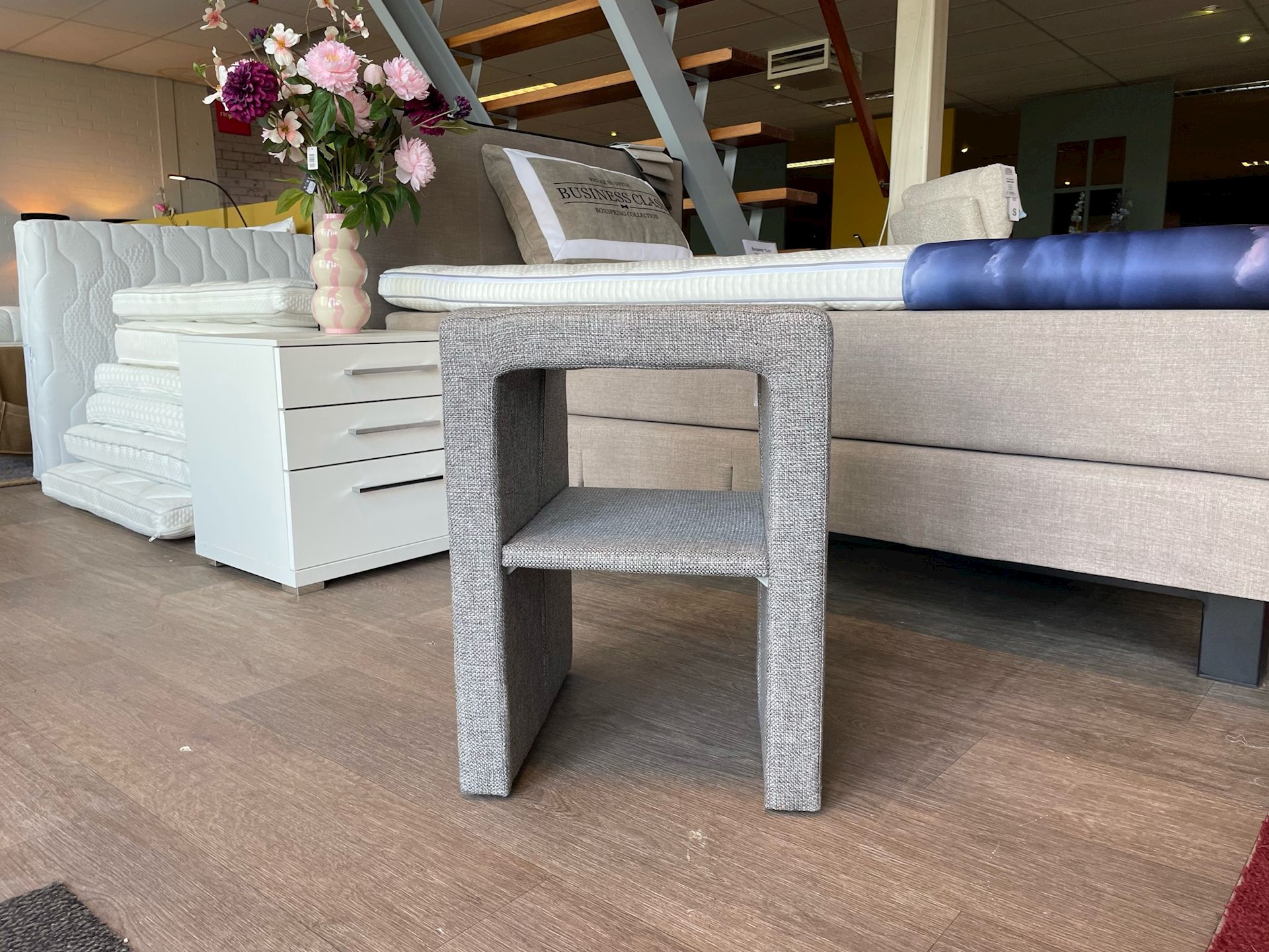 Dit is een mooie gestoffeerde hocker die mooi gebruikt kan worden als nachtkastje. Hij kost maar €118,-