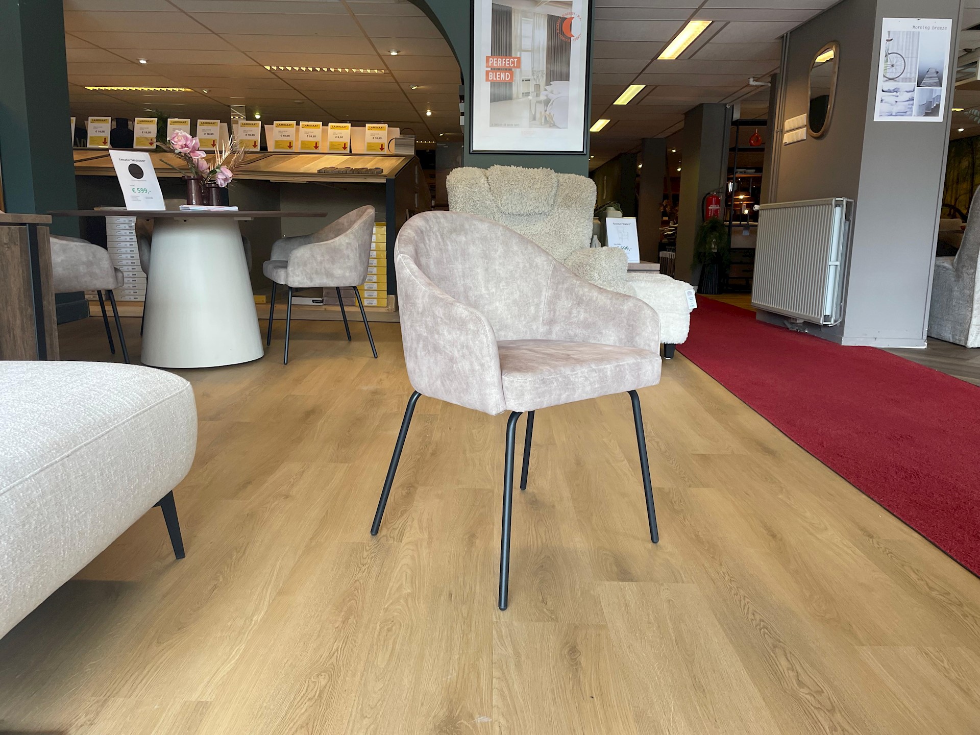 Dit is de mooie eetkamerstoel Beau. Ze kost nu nog maar €149,- in plaats van €199,-