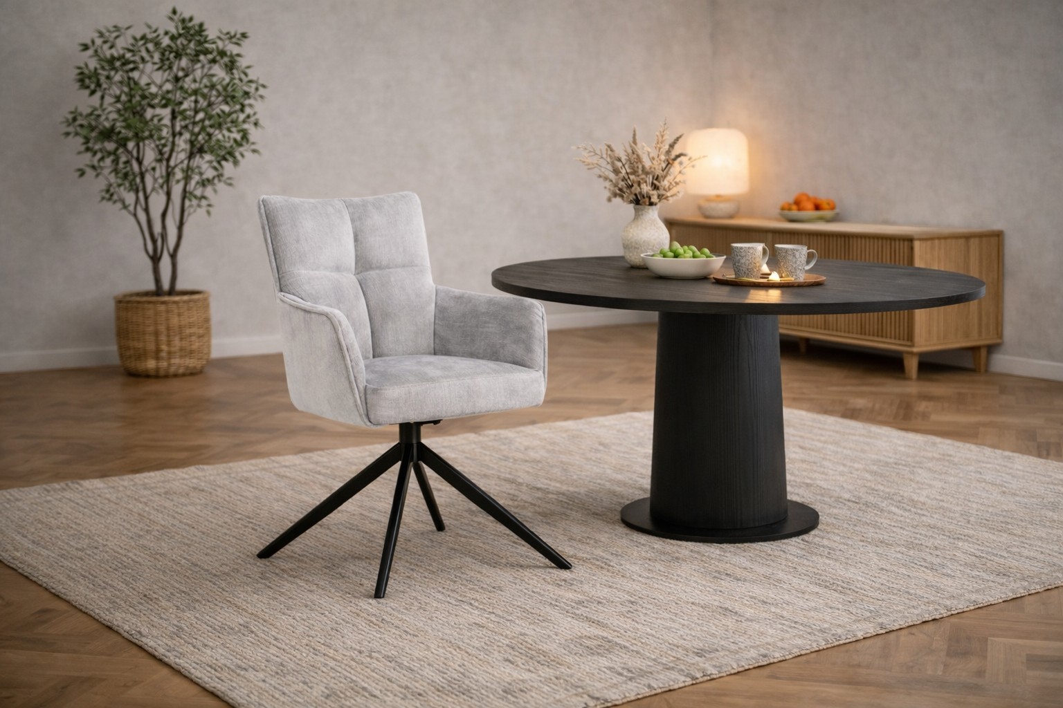 De eetkamerstoel James is een mooie stoel met een luxe uitstraling. Hij is leverbaar in de kleuren grey, white en beige. De stoel kost nu €149,-