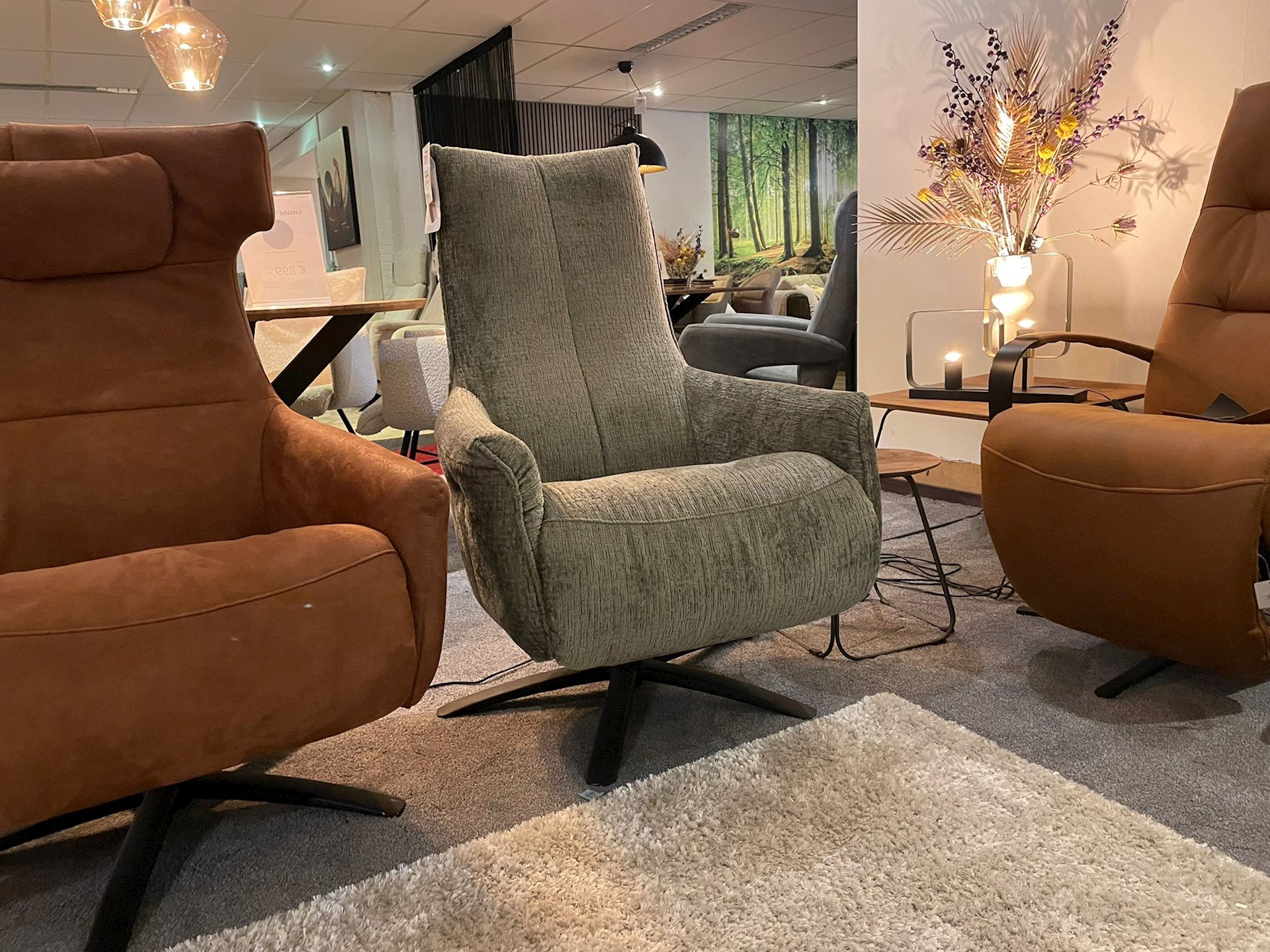 Dit is de mooie relaxfauteuil 7686. Hij is leverbaar met elektrische bediening of manuele bediening. Het model in de winkel is met elektrische bediening.
