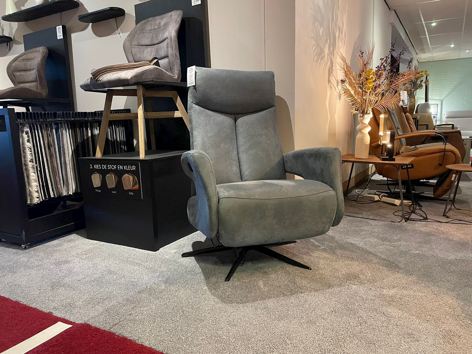 Dit is de mooie relaxfauteuil 8001. Hij is leverbaar met een elektrische bediening of met een manuele bediening. Het showroom model heeft een elektrische bediening.