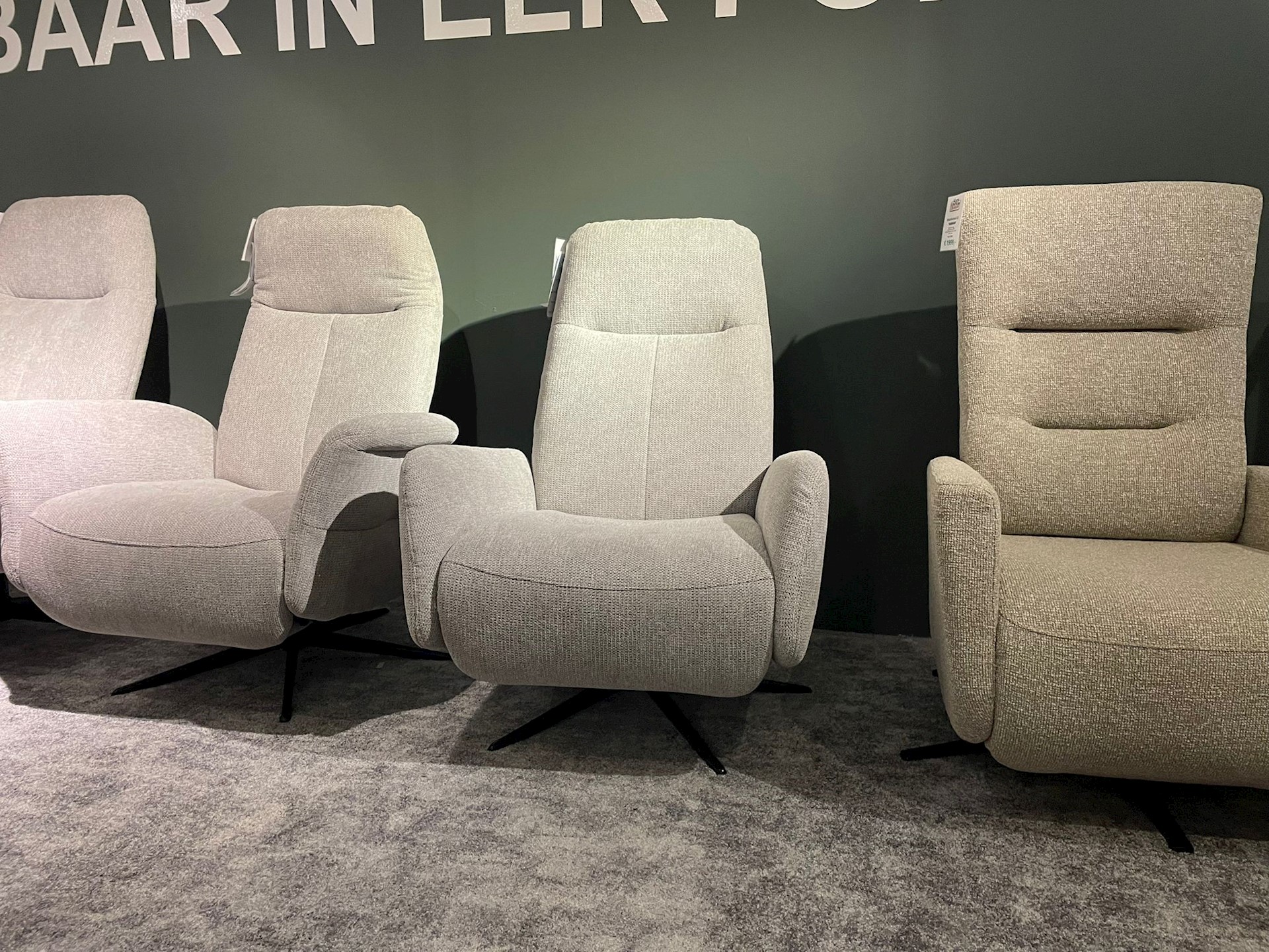 Dit is de mooie relaxfauteil 8150. Hij is leverbaar in diverse afmetingen en met een handmatige of elektrische bediening. Het showroom model heeft een handmatige bediening.