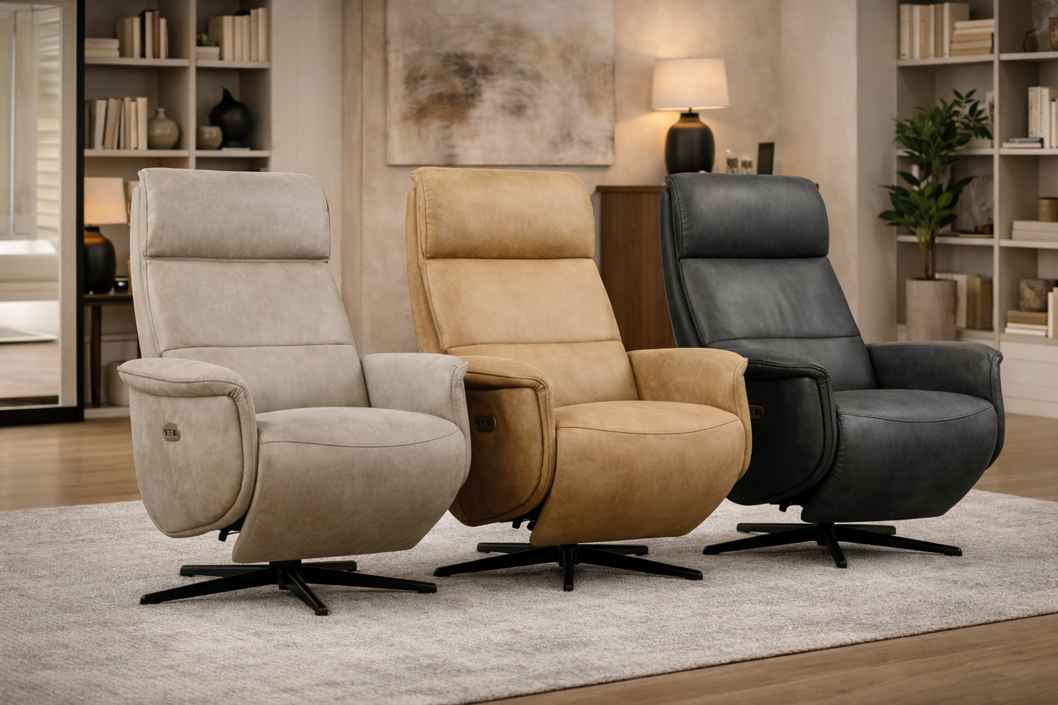 De relaxfauteuil Teye is elektrisch en is leverbaar in drie verschillende kleuren.