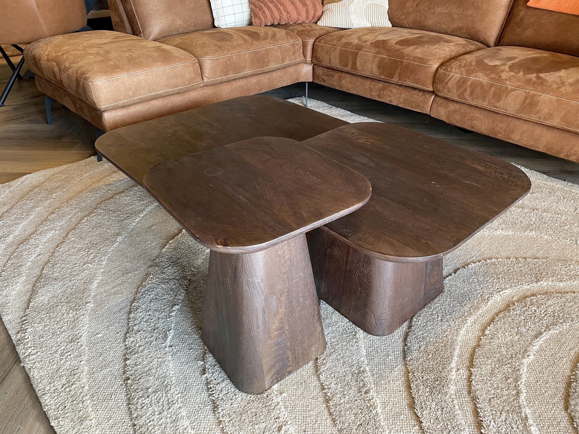Dit is het mooie bijzettafel set met de naam Aron. De tafeltjes zijn te koop als gehele set voor €917,- maar ze zijn ook allemaal los te koop.
