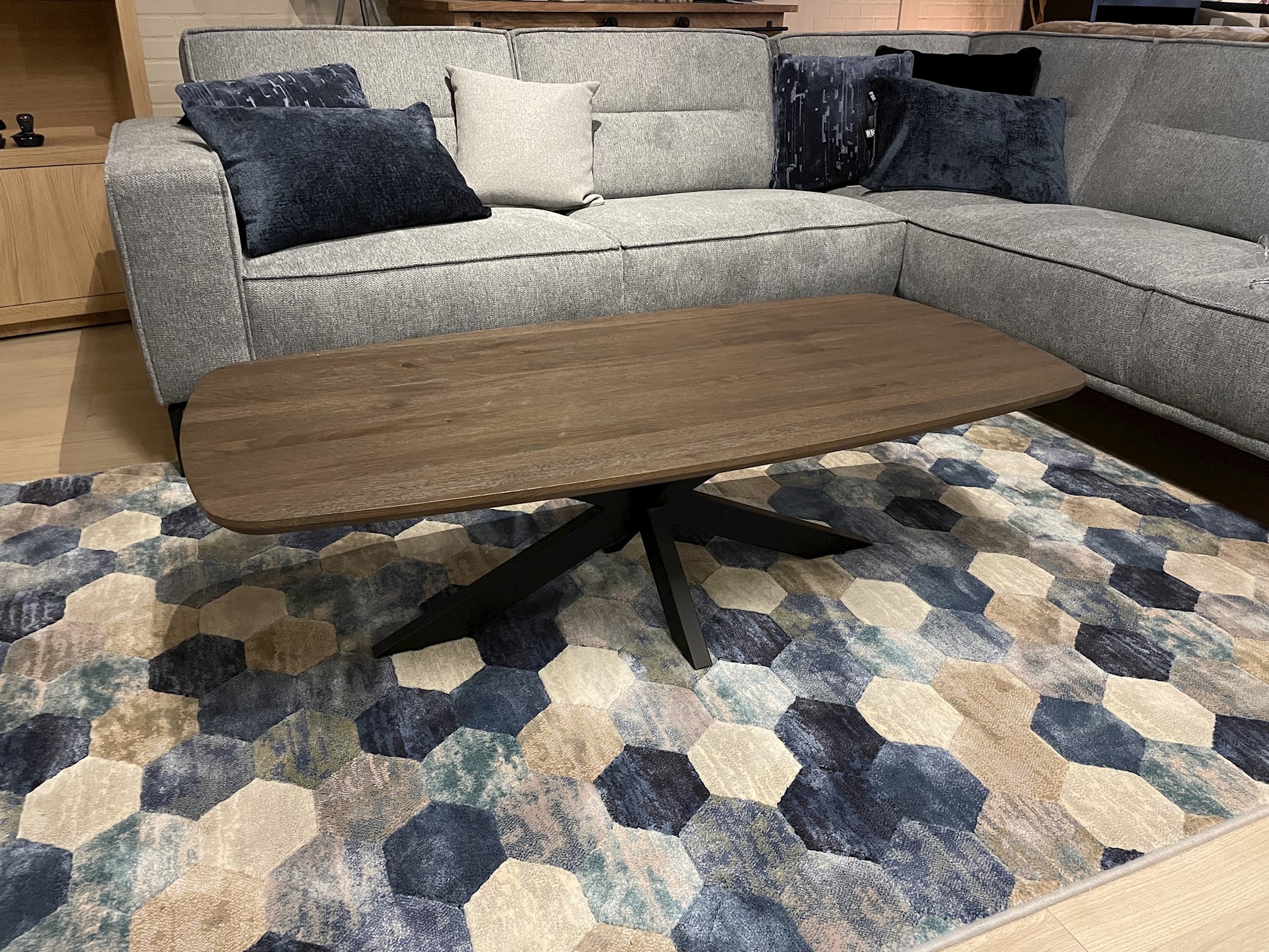 Salontafel Hanneke kost maar €599,- in plaats van €699,- De kleur van het blad is Young Top en de poten zijn zwart metaal.