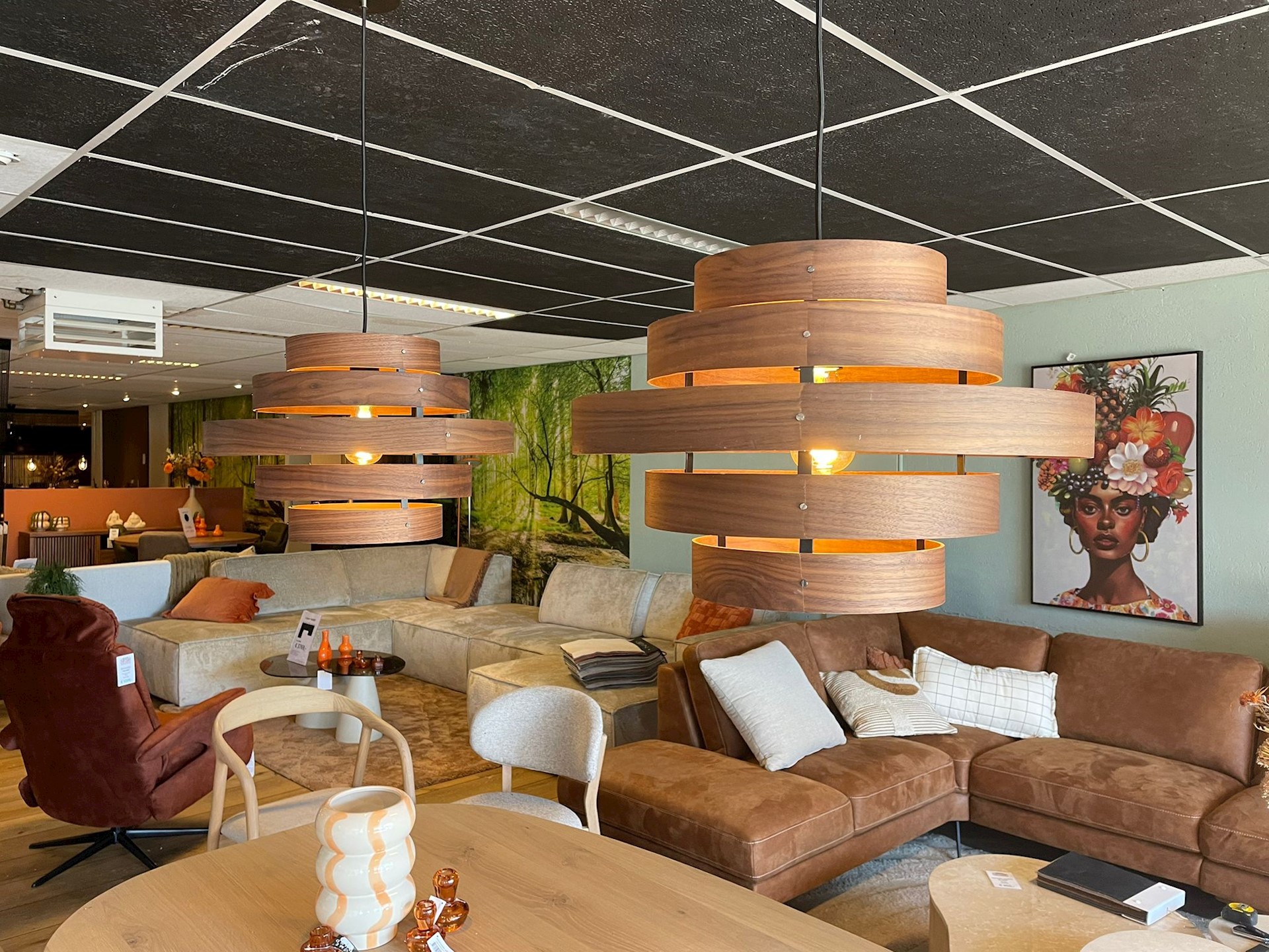 Hanglamp Evi brengt stijl en sfeer in huis met zijn moderne, matzwarte design. Door de verstelbare hoogte hangt hij altijd precies goed – perfect boven de eettafel of in uw knusse zithoek. Ze kost €259,- Er is ook een vloerlamp en een tafellamp.