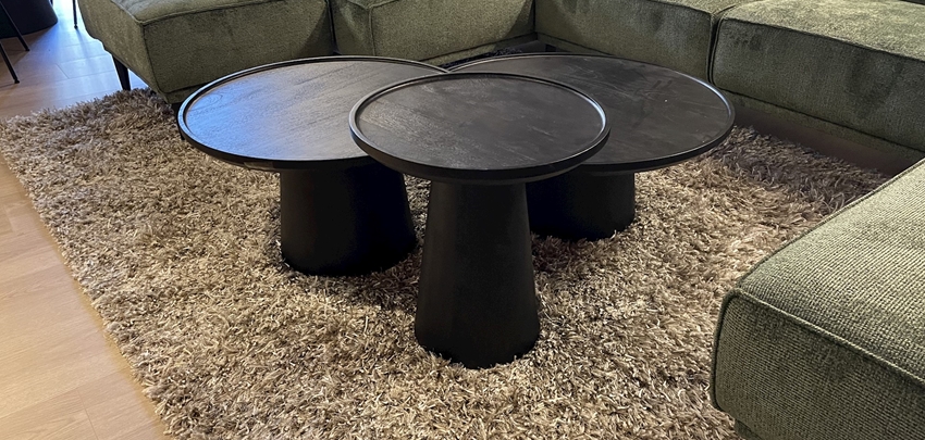 De salontafelserie Ron heeft een simpele, strakke vormgeving. Als set is het een mooi geheel, maar ook de tafeltjes los kunt u erg mooi in uw interieur plaatsen. De tafel is gemaakt van mango hout en is afgewerkt met een mooie zwarte coating.