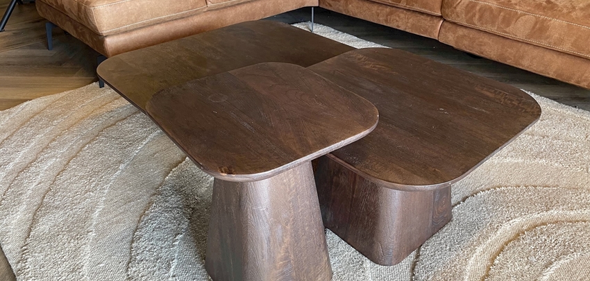 Dit is het mooie bijzettafel set met de naam Aron. De tafeltjes zijn te koop als gehele set voor €917,- maar ze zijn ook allemaal los te koop.