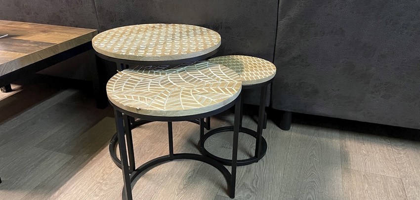 Salontafelset Peet wordt nu verkocht voor €159,- in plaats van €219,- Het is een set van 3 tafeltjes. Hij staat op ons budgetplein